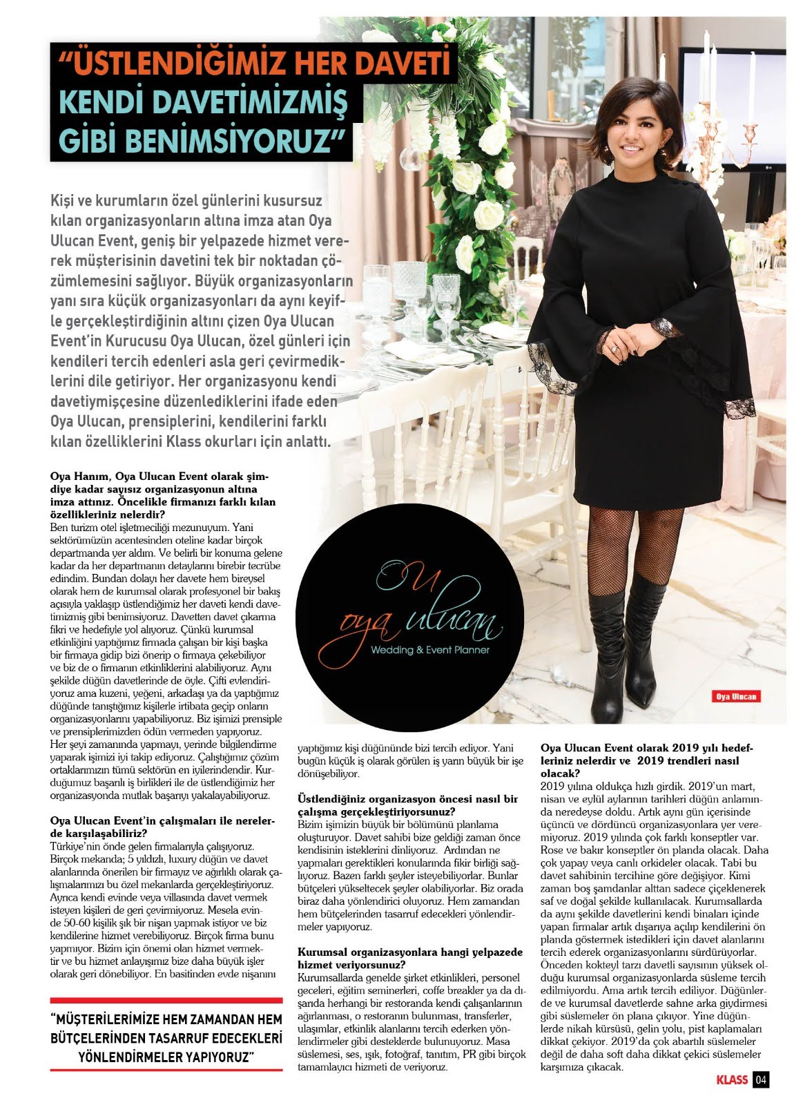 OYA ULUCAN EVENT; KURULUŞUNDAN BU YANA MEKANA VE AMACA ÖZEL TASARIMLARI ILE HIZMET VERMEKTEDIR.